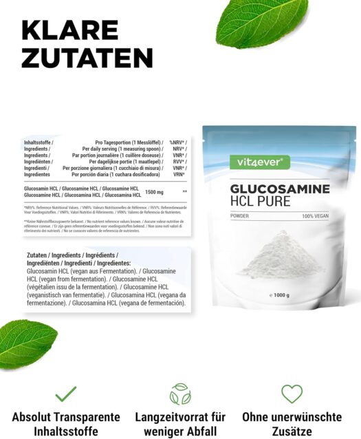 Glucosamine HCL (vegan from fermentation).