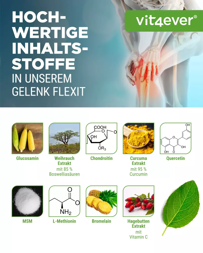 The capsules contain an active ingredient combination of glucosamine, frankincense extract, chondroitin, curcuma extract, quercetin, MSM, L-methionine, bromelain and natural vitamin C.