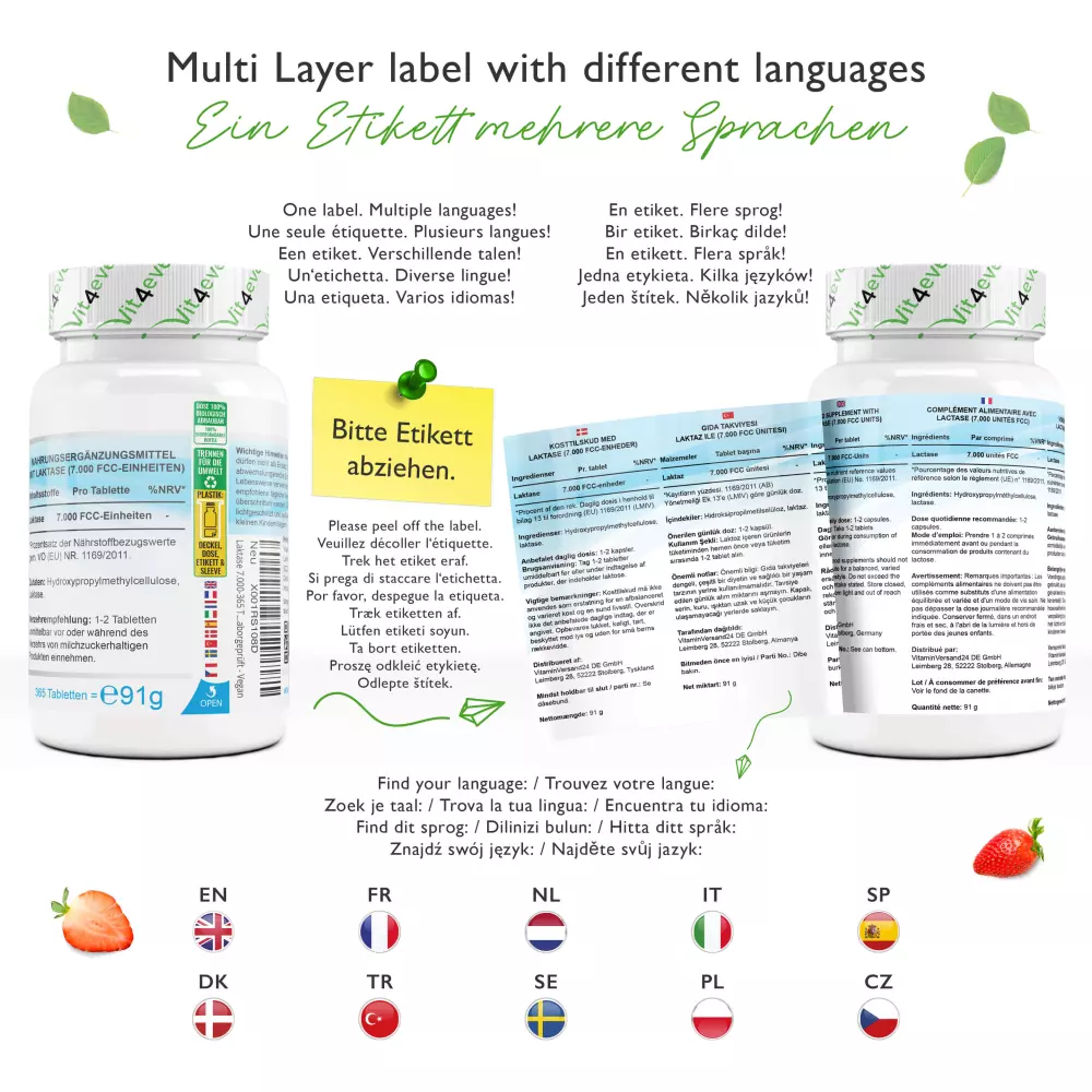 Hydroxypropyl methylcellulose (plant-based), lactase.