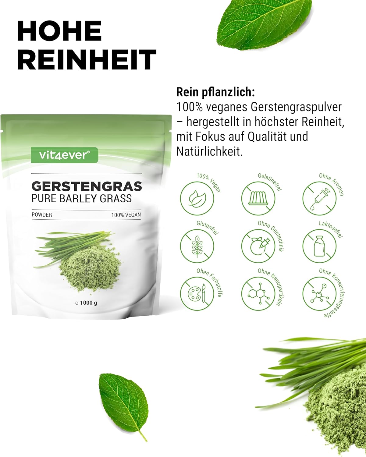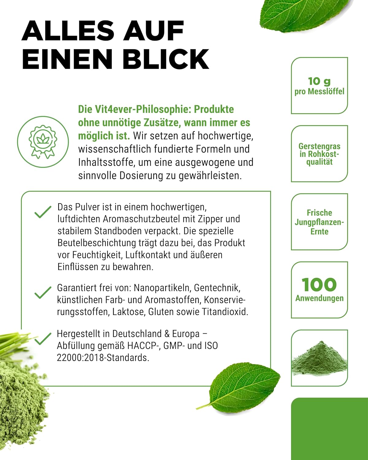 Young barley grass is rich in minerals, trace elements, vitamins, antioxidants and bitter compounds.