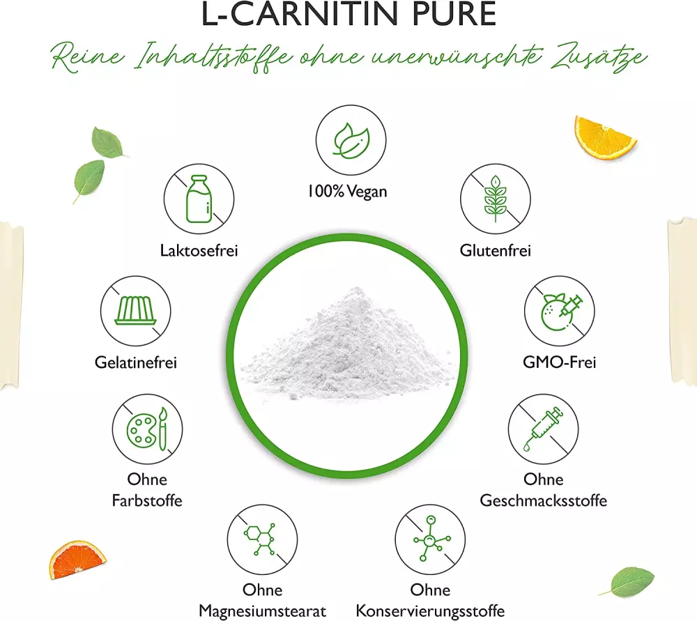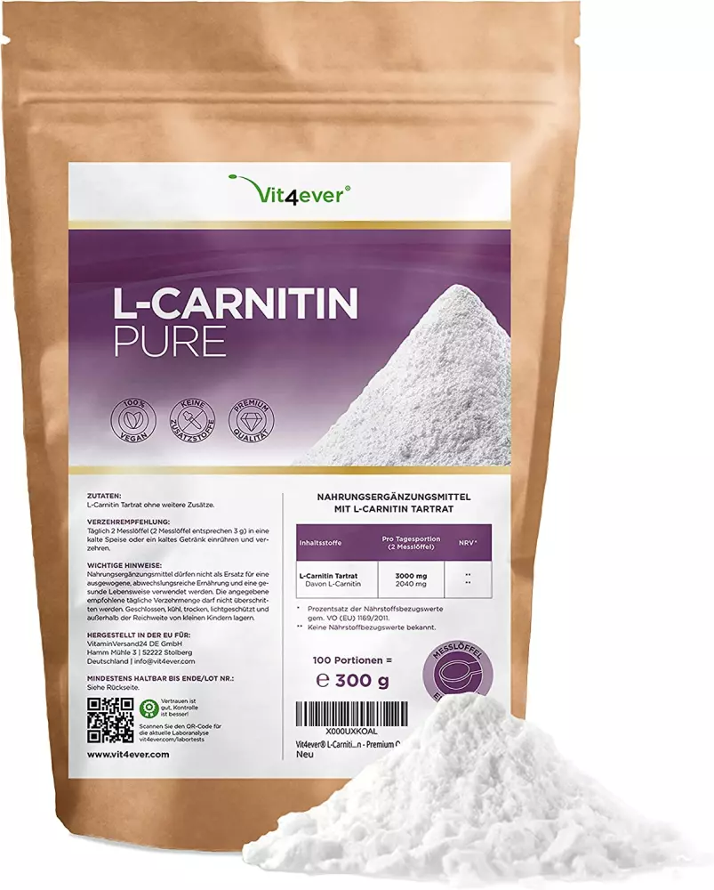 L-carnitine tartrate powder contains 68 per cent pure L-carnitine.
