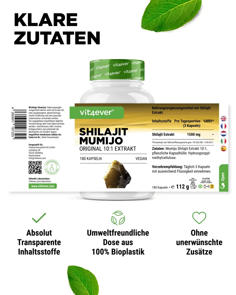 Shilajit Mumijo extract 10:1, vegetable capsule shell: hydroxypropyl methylcellulose