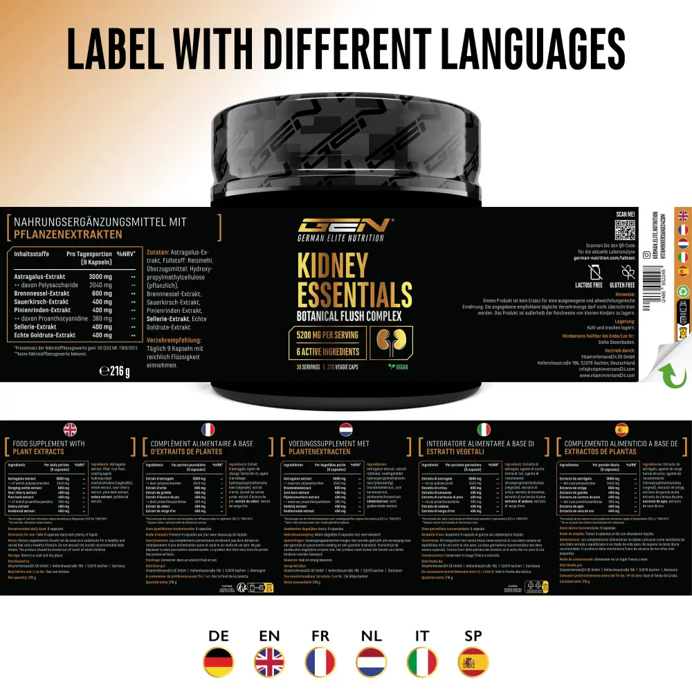 Extracto de astrágalo, excipiente: harina de arroz, agente de recubrimiento: hidroxipropilmetilcelulosa (de origen vegetal), extracto de ortiga, extracto de guinda, extracto de corteza de pino, extracto de apio, extracto de vara de oro.