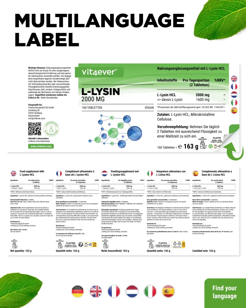| L-lisina HCL | 2000 mg |