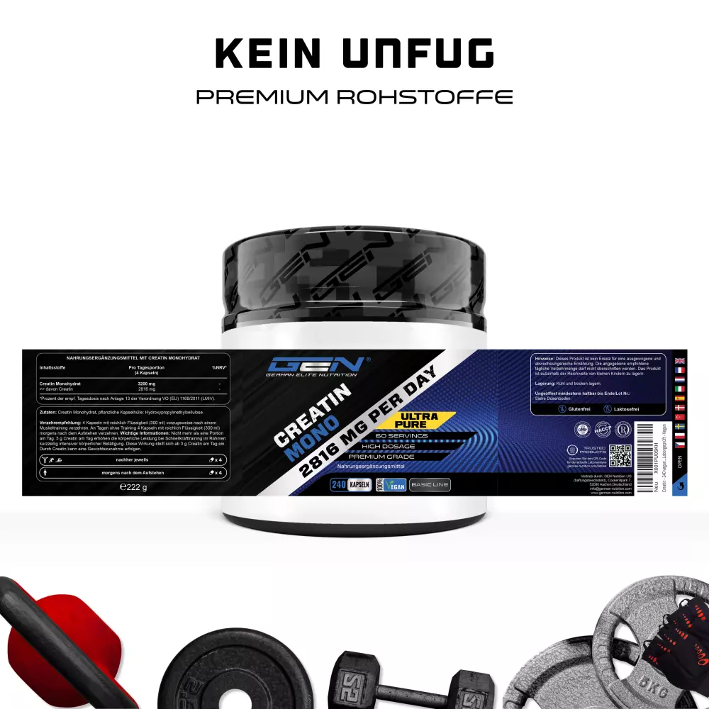 → El monohidrato de creatina en cápsulas ofrece una forma sencilla y fácilmente transportable de llevar y tomar tu dosis diaria de creatina.
