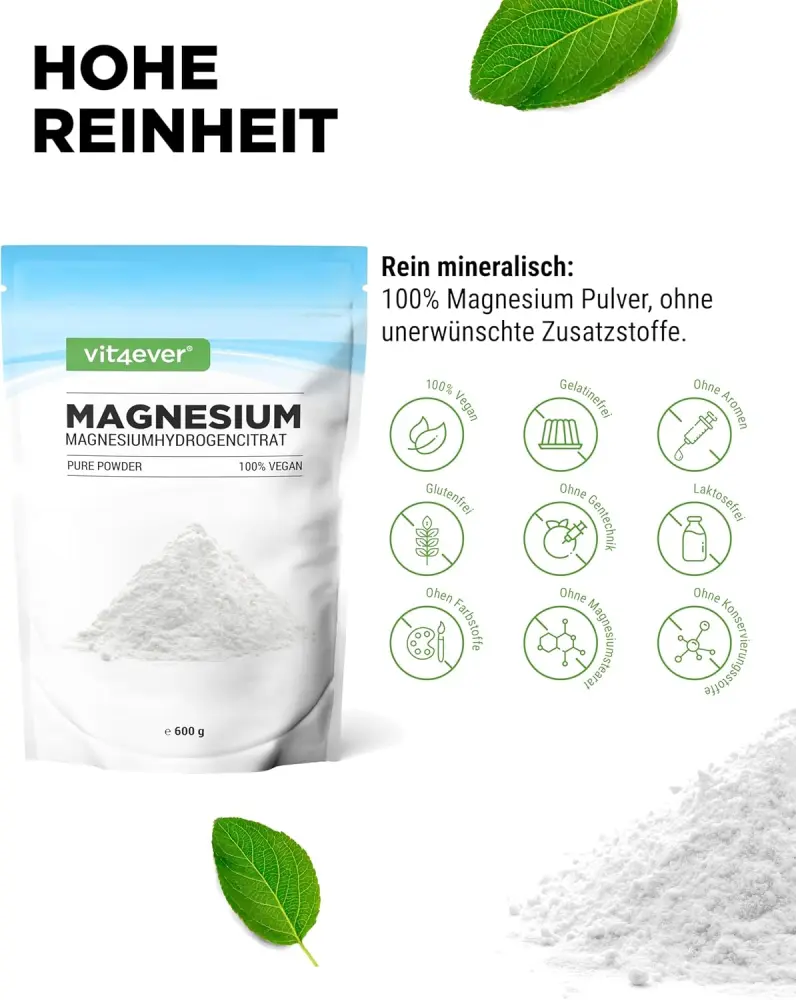 Le citrate acide de magnésium est un sel de magnésium de l’acide citrique et correspond à la plus haute qualité et pureté.