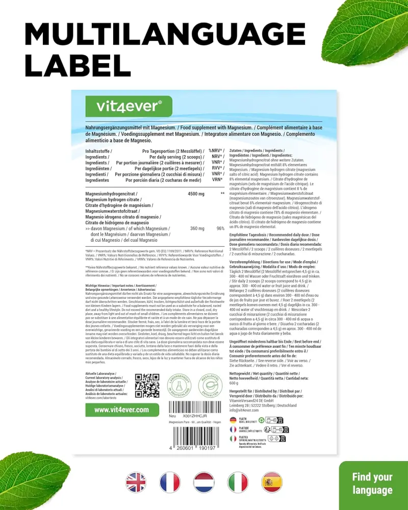 Comparé au citrate de magnésium « normal », le citrate acide de magnésium est un magnésium hydraté qui se caractérise par une très bonne solubilité et un goût légèrement acide.