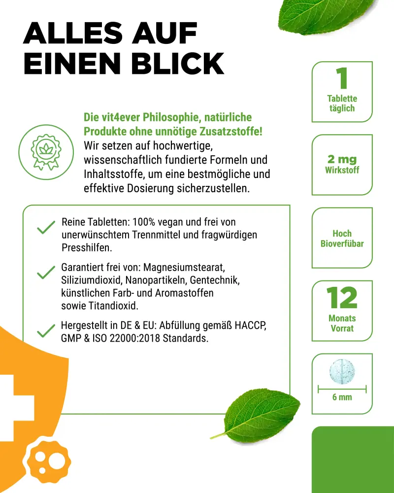 Les très faibles quantités dont notre organisme a besoin sont généralement absorbées par l’alimentation, de sorte qu’une supplémentation supplémentaire est relativement rarement nécessaire.