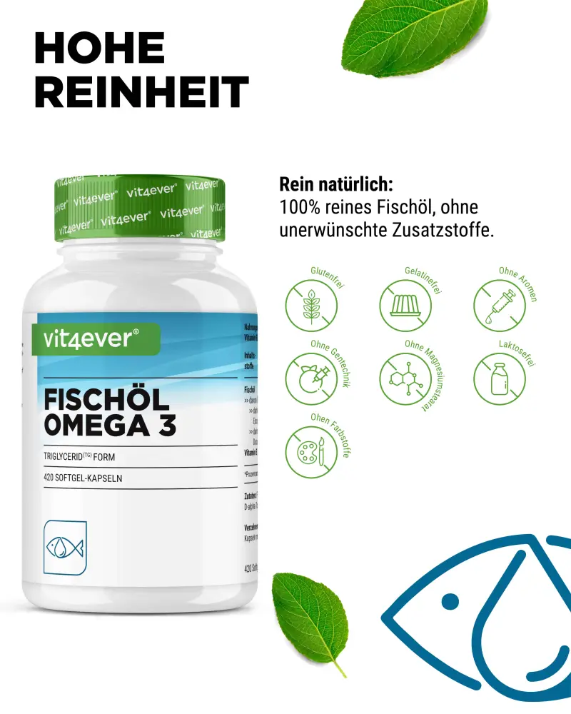 Comme nous ne pouvons pas produire nous-mêmes d’oméga 3, qui nous fournit de l’EPA (acide eicosapentaénoïque) et du DHA (acide docosahaénoïque), nous devons les prendre via l’alimentation maritime ou sous forme de supplément efficace, par exemple sous forme de capsules d’huile de poisson.