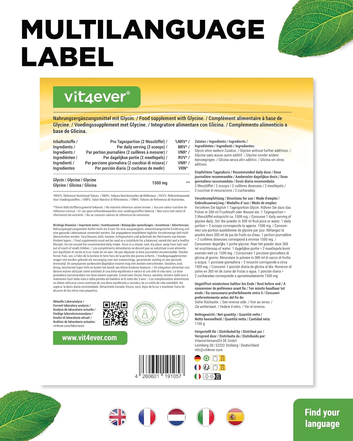 La polvere è altamente solubile in acqua, ha un sapore leggermente dolce e, con 1,5 grammi al giorno, è sufficiente per oltre 700 porzioni.