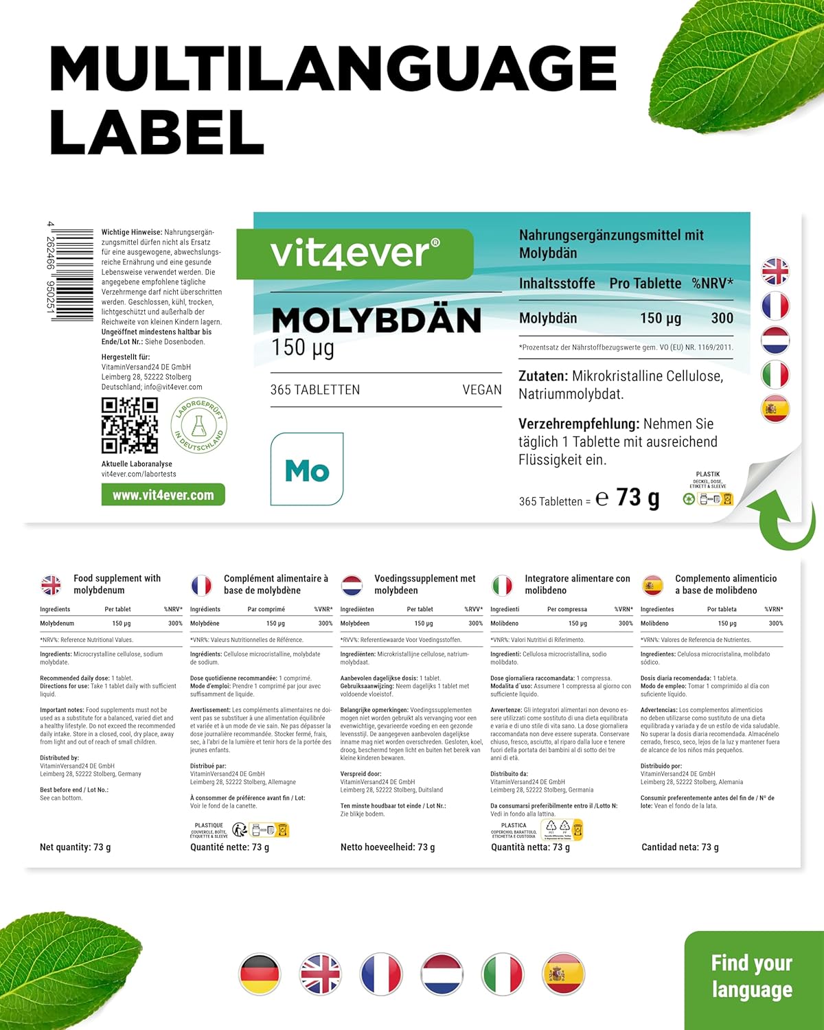 Cellulosa microcristallina (riempitivo), molibdato di sodio (contiene il 39% di molibdeno).
