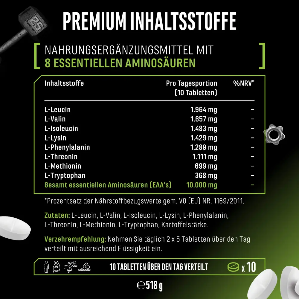 Geschikt voor sporters en gezondheidsbewuste mensen die hun lichaam willen voorzien van het volledige spectrum aan EAA’s (L-leucine, L-valine, L-isoleucine, L-fenylalanine, L-lysine, L-threonine, L-methionine en L-tryptofaan).