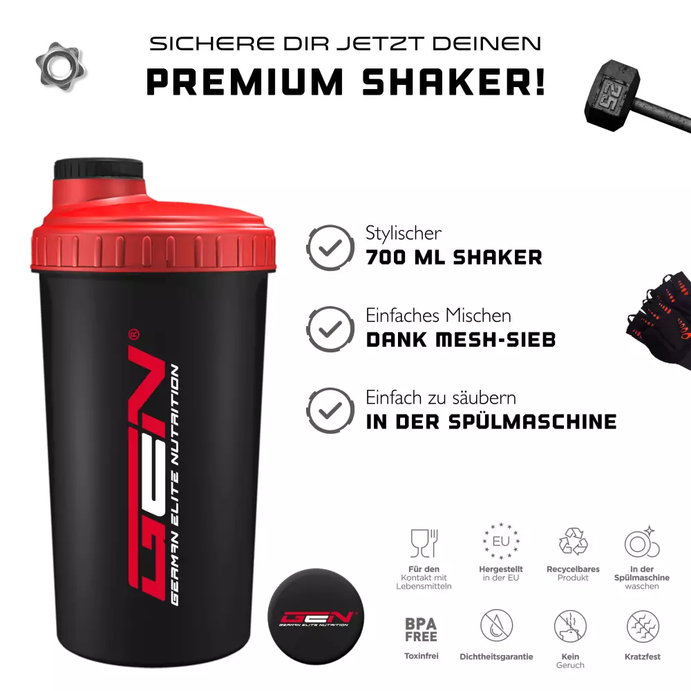 GEN shaker met print in zwart en rood.