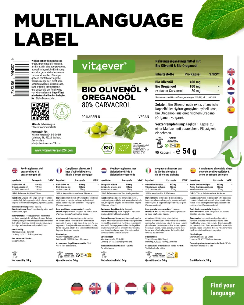 De combinatie van biologische extra vierge olijfolie en biologische oregano-olie biedt je de voordelen van beide oliën in één capsule.