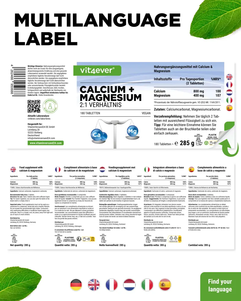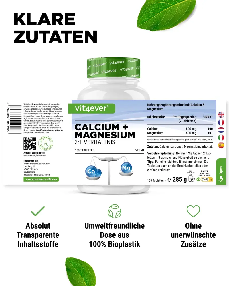 De optimale 2:1 verhouding van → calcium en → magnesium in één tablet.