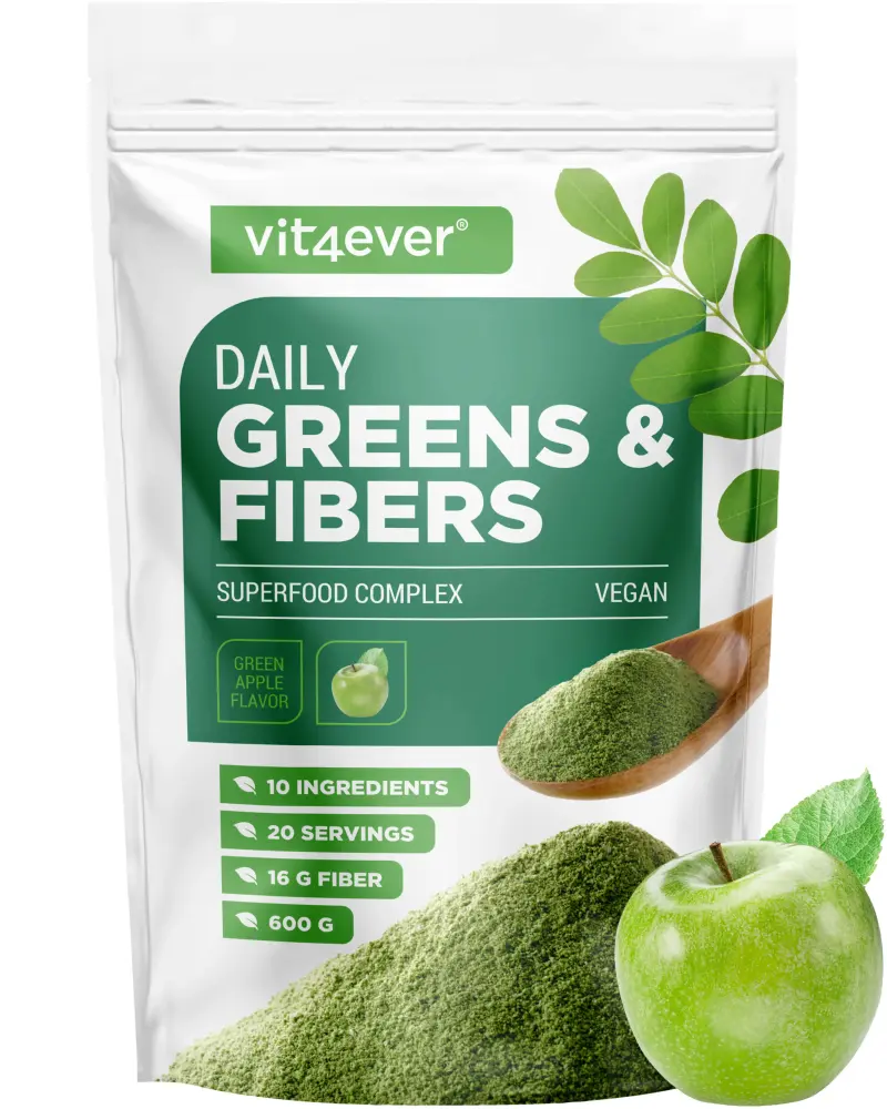 Daily Greens & Fibers biedt je in 2 smaken een overvloed aan vezels, ‘superfoods’ en functionele plantenextracten.