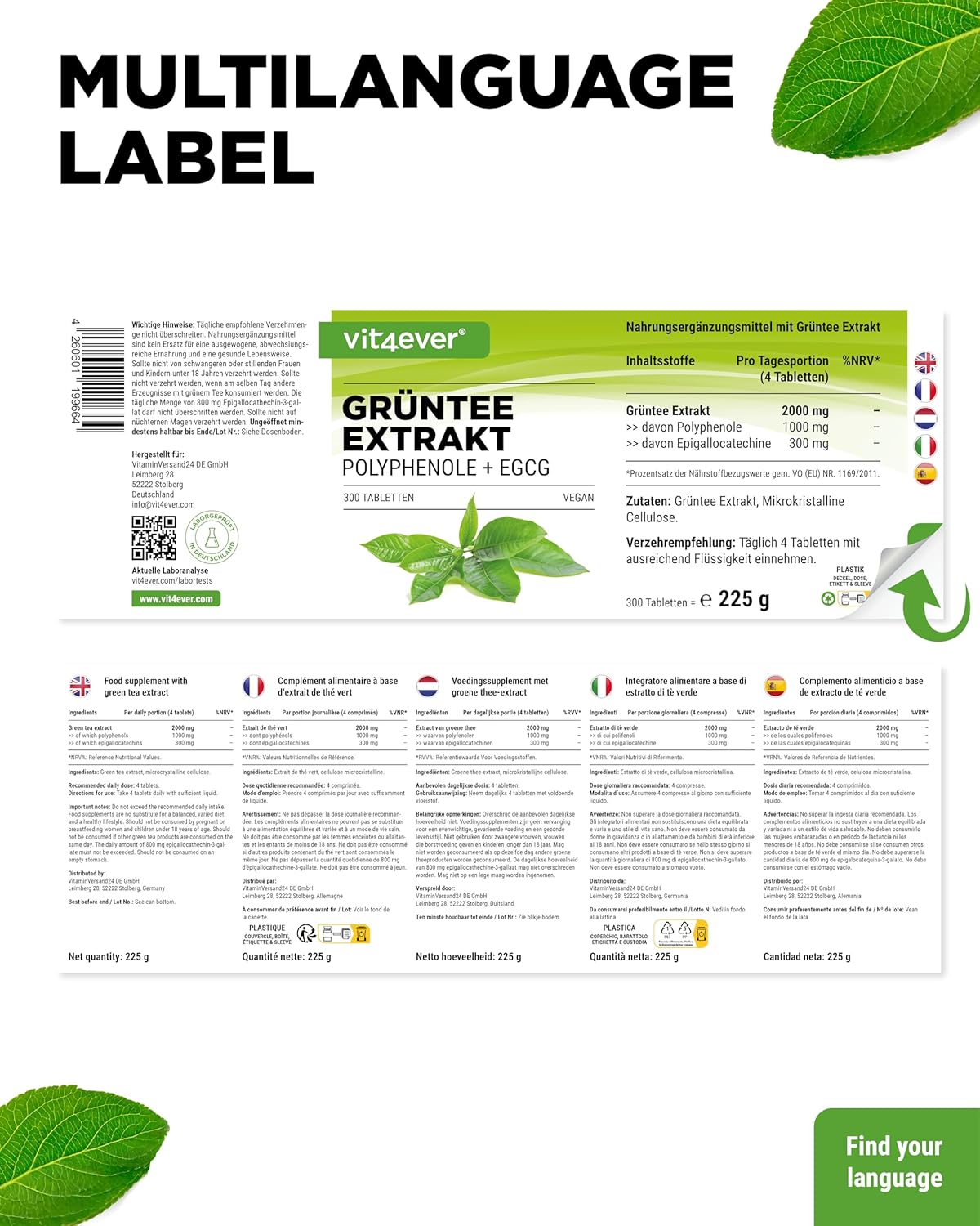 Groene thee-extract, microkristallijne cellulose.