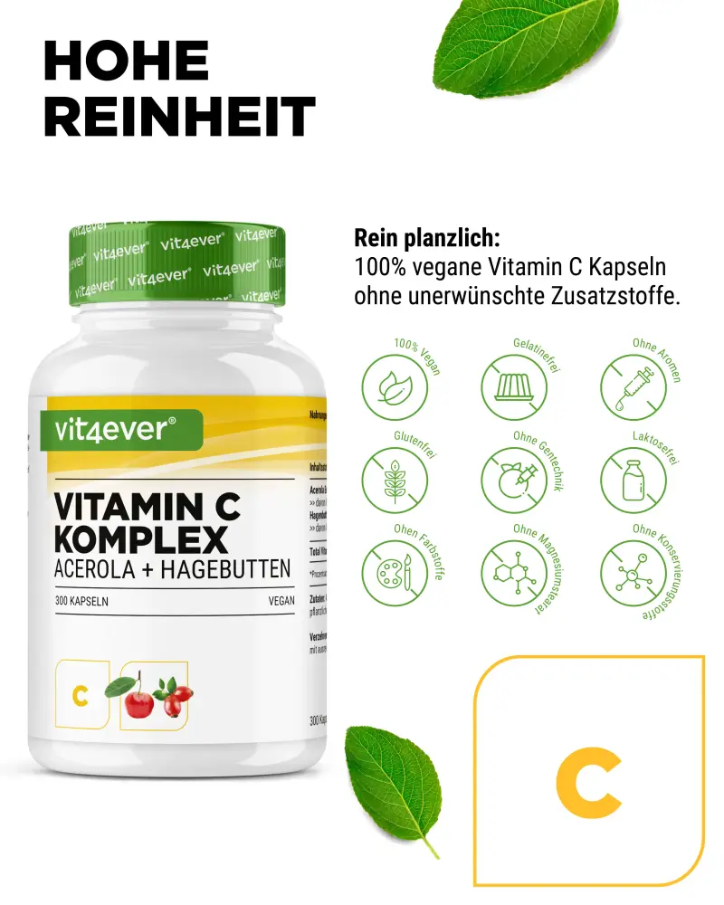 Naast vele andere functies ondersteunt vitamine C het immuunsysteem, vermindert het vermoeidheid en beschermt het de cellen tegen oxidatieve stress.