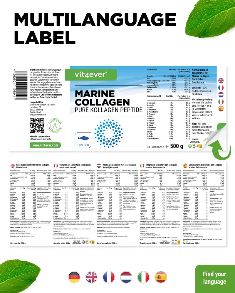 100% gehydrolyseerd marien collageenpeptidepoeder (vis).