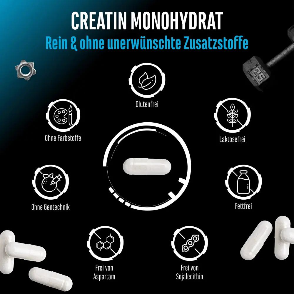 Monohydrat kreatyny, substancja powlekająca: kapsułka żelatynowa (wołowa).