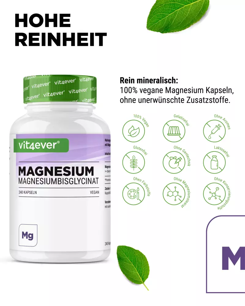 Bisglicynian magnezu, substancja powlekająca: hydroksypropylometyloceluloza (pochodzenia roślinnego), substancja wypełniająca: celuloza mikrokrystaliczna, substancja przeciwzbrylająca: kwas stearynowy.