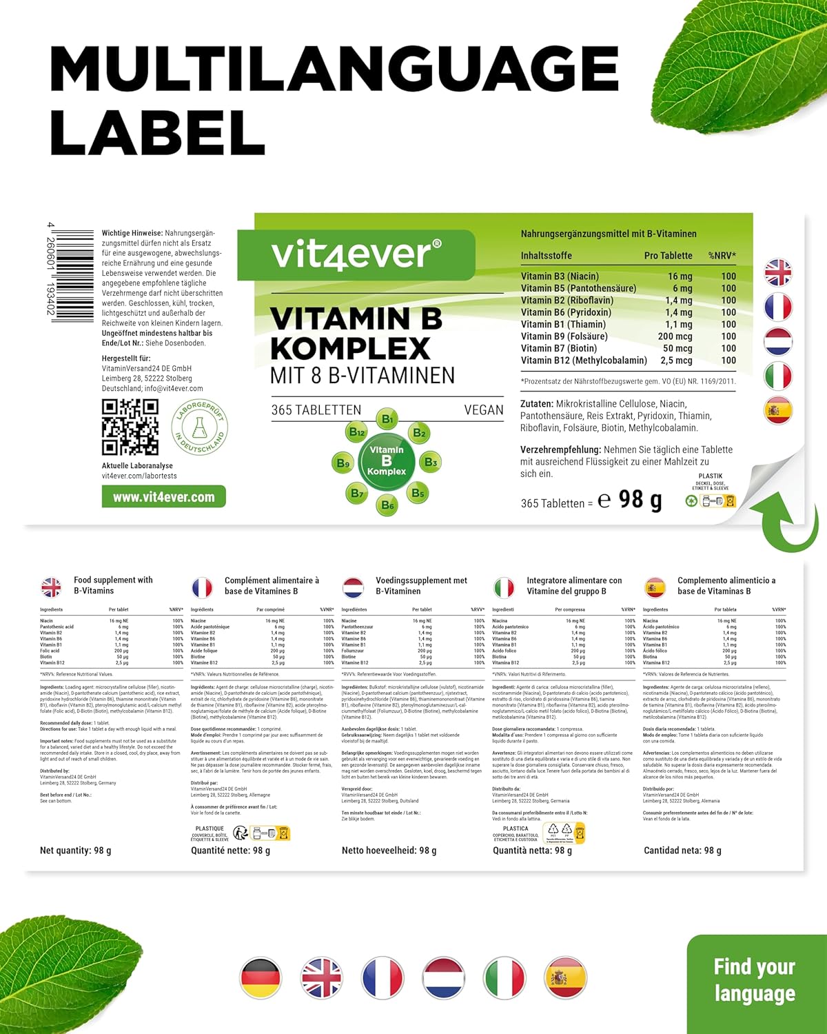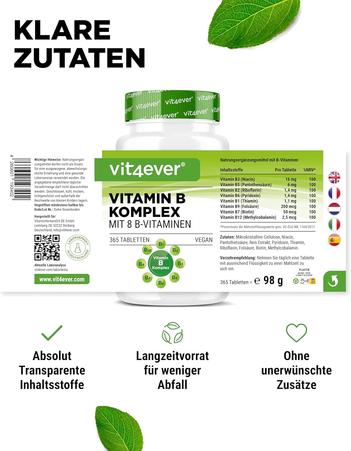 Celuloza mikrokrystaliczna (substancja wypełniająca), niacyna, kwas pantotenowy, ekstrakt ryżowy (substancja przeciwzbrylająca), pirydoksyna, tiamina, ryboflawina, metylokobalamina, kwas foliowy, biotyna.