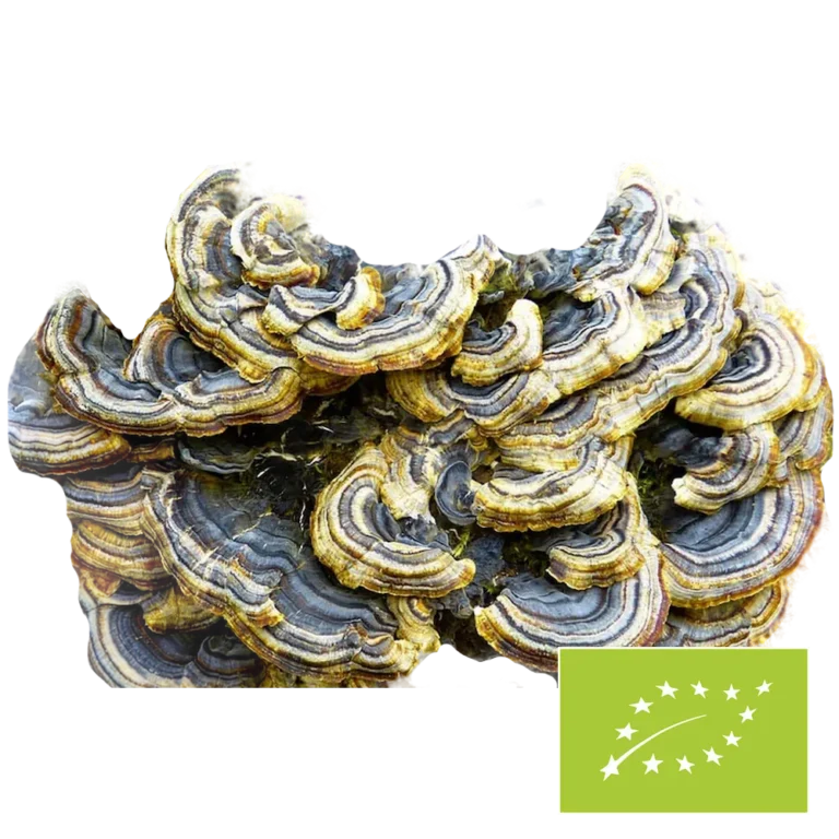 Coriolus versicolor, auch bekannt als Schmetterlingstramete, ist ein traditionell verwendeter Vitalpilz, der in Asien seit Jahrhunderten geschätzt wird.