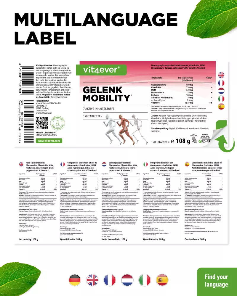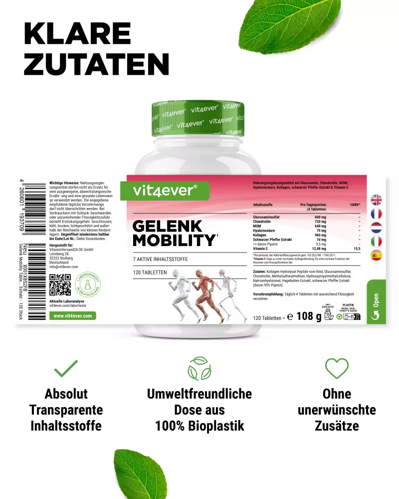 Gelenk Mobility unterstützt durch seine hochwirksame Formel aus 7 Inhaltsstoffen die Gesundheit der Gelenke.