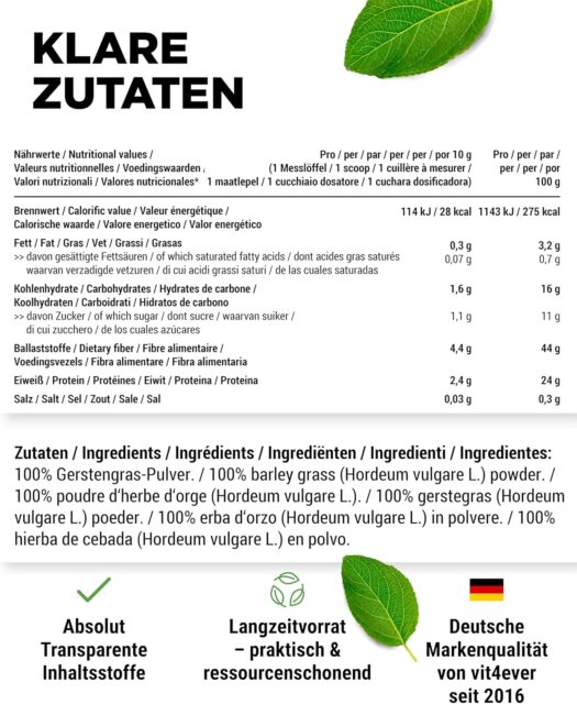 Junges Gerstengras ist reich an Mineralien, Spurenelementen, Vitaminen, Antioxidantien und Bitterstoffen.