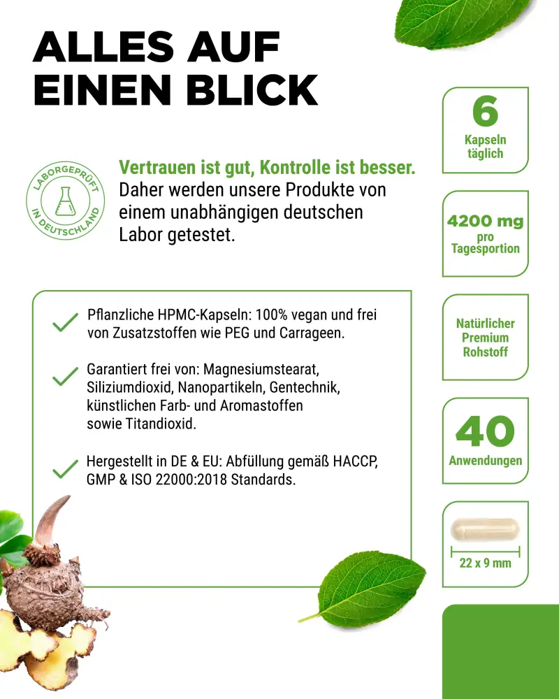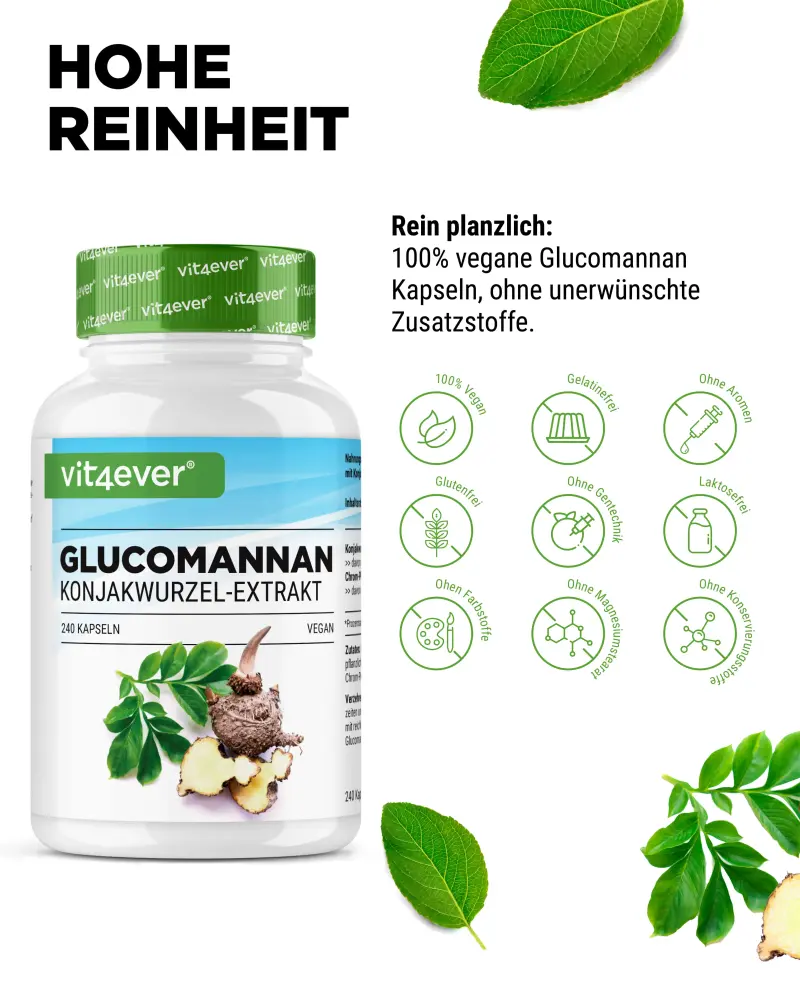 → Glucomannan (auch Konjak Mannan genannt) ist ein Ballaststoff aus der Konjakwurzel und dient wissenschaftlich belegt als natürlicher Helfer bei der Gewichtsreduktion.