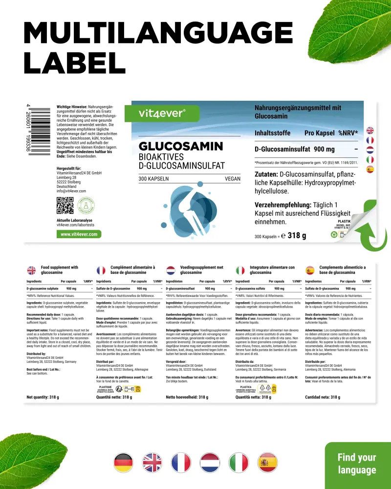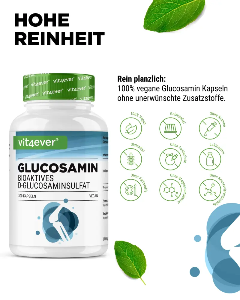 Die Kapseln enthalten besonders reines, bioaktives D-Glucosaminsulfat und sind daher auch für Veganer geeignet.