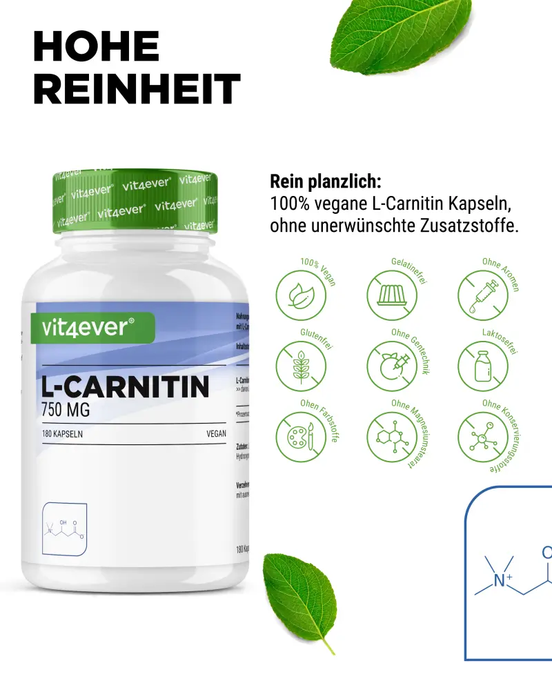 L-Carnitin ist am Energiestoffwechsel beteiligt und spielt eine Rolle bei der Metabolisierung von Fettsäuren zur Energieerzeugung.