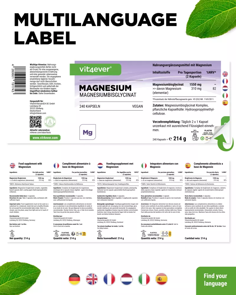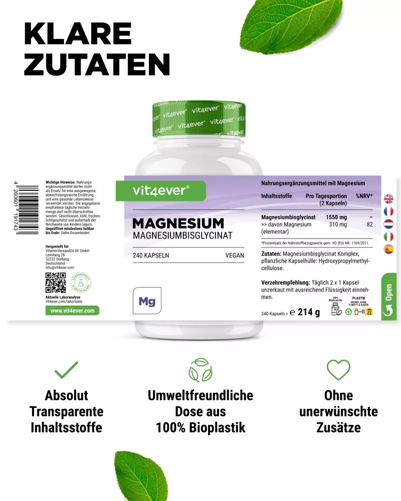 Magnesiumbisglycinat, Überzugsmittel: Hydroxypropylmethylcellulose (pflanzliche Kapselhülle).