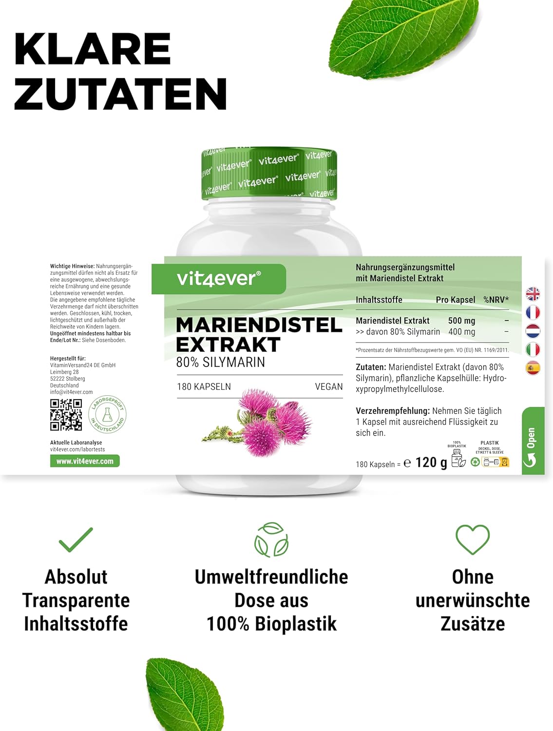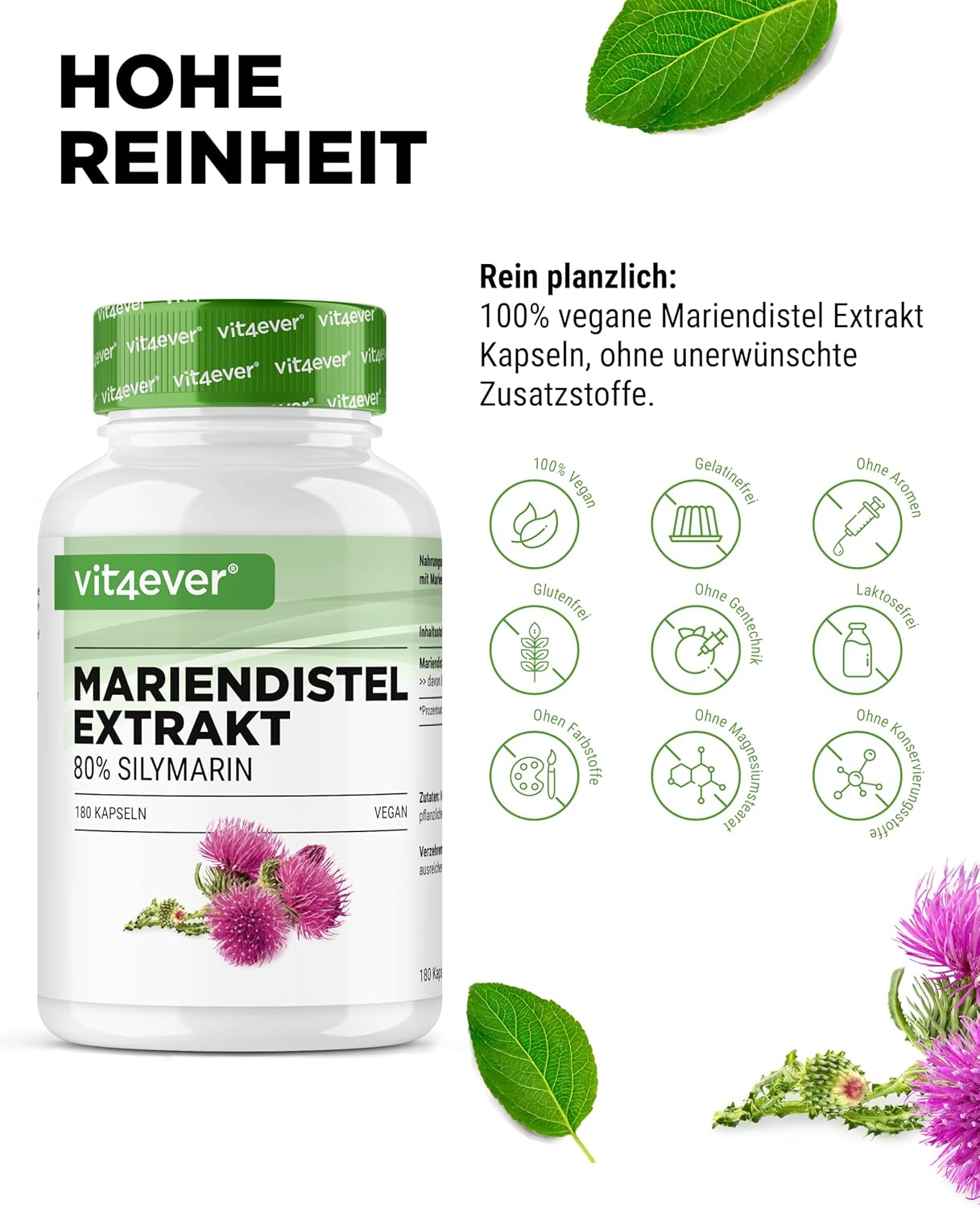 Mariendistel Extrakt mit einem Silymarin-Anteil von 80 Prozent.