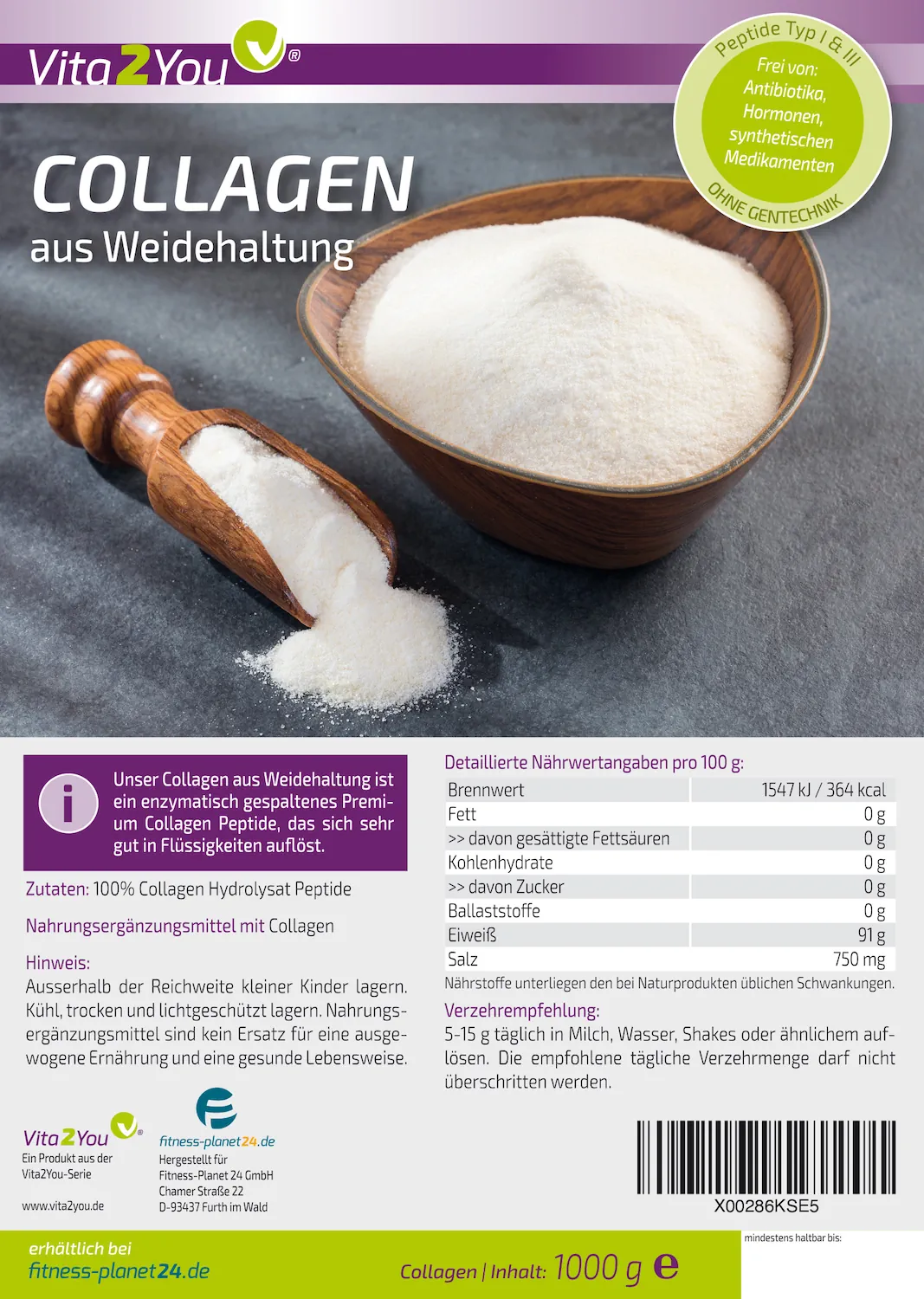 Premium Kollagen Pulver – Weidehaltung – 1000 g