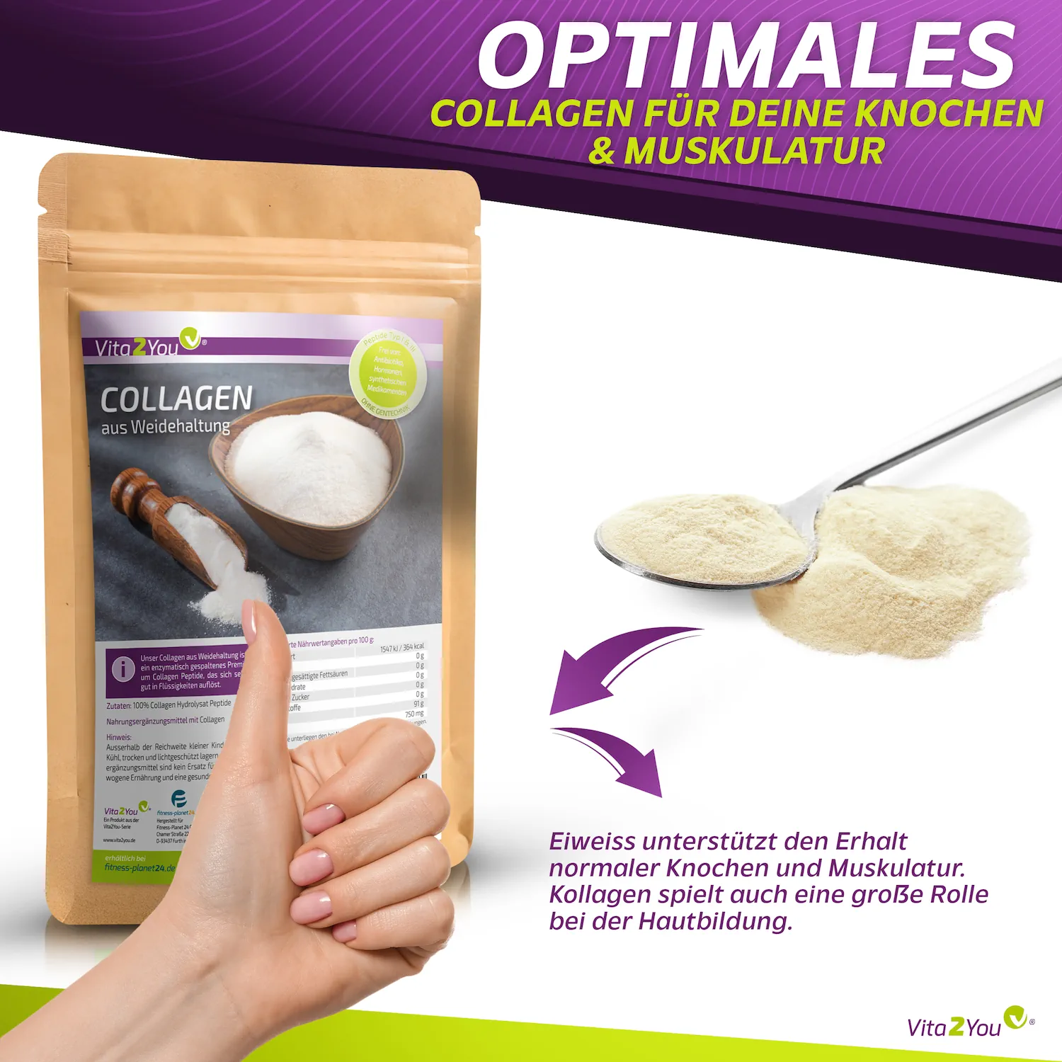 SOLUGEL® Premium Collagen Pulver aus Weidehaltung in zertifizierter und geprüfter Qualität.