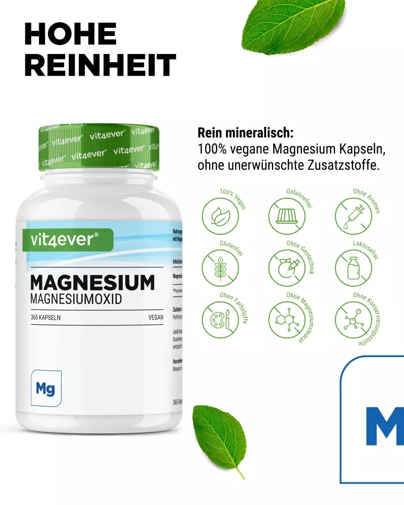 O óxido de magnésio tem a mesma elevada bioequivalência e facilidade de utilização que o citrato de magnésio, mas, de acordo com um estudo científico de Shechter et al. (2012), oferece um armazenamento intracelular de magnésio significativamente melhor do que o citrato de magnésio após várias semanas de ingestão.